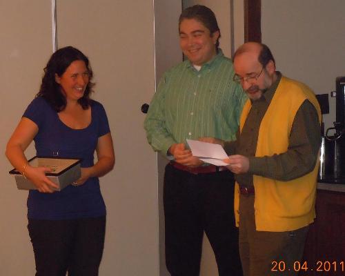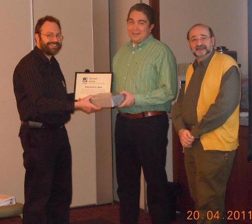 ******************************************************************************************* On April 20, 2011 during our General Assembly meeting, we recognized some of our leadership team members for their commitment and outstanding contributions for enhancing Quality goals and objectives of our section and the community. Khaled Khattab, the Award Chair, Jean-Pierre Amiel the past Award Chair and Chantale Simard our Section Chair handed over the recognitions (see pictures attached). The recognized people were: Chantale