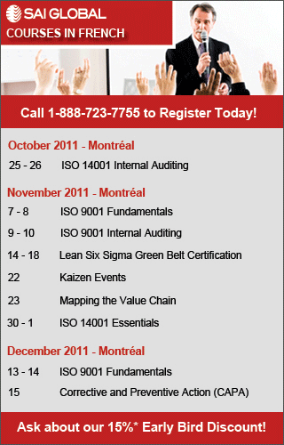 This Newsletter is distributed to more than 500 ASQ members. This month, 305 are members of our section (401 Montreal) and the rest is from Section 404 Montréal francophone and Section 112 Vermont. We also ask all readers to forward it to people interested in Quality. We encourage all members to get involve within the section. You can be part of the leadership team, participates at events, participates in our Linked In Networking group or, write an article for the Newsletter. To publish your article is a good way to share your knowledge with the quality community. Please, send your French or English articles to our Newsletter editor. We want to hear and learn from you! |