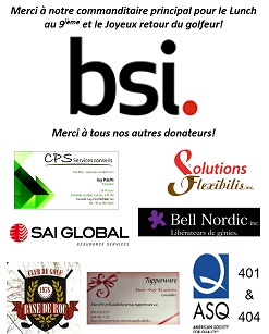 Thanks to Marie-Ange Alcaidinho, ASQ Montreal Francophone Section 404 Program Chair for organizing this event with me. Thanks to all our sponsors: ![]() |